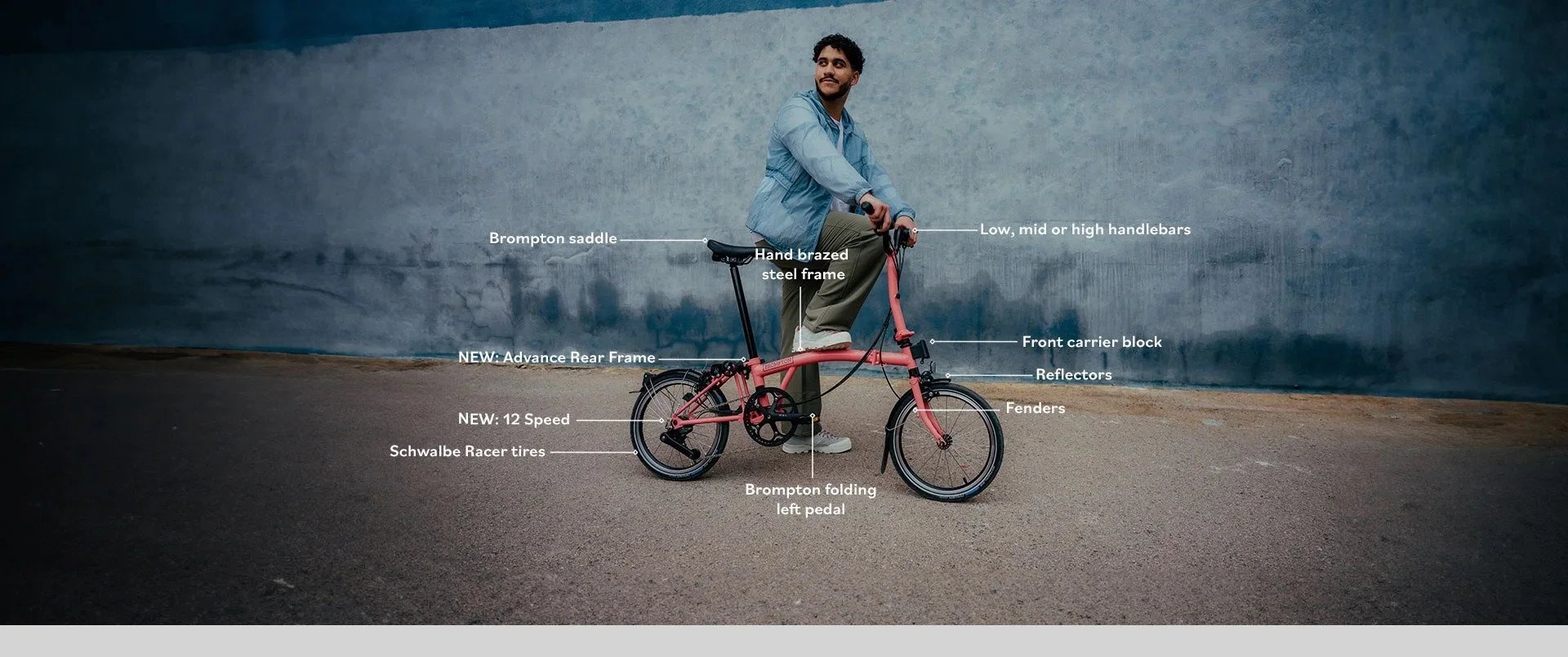 The latest development is the C Line 12-speed, brought in to accompany the 2 and 6-speed options. First seen on the P Line model, Brompton's unique 12-speed system is an expertly engineered solution that gives riders more gears and more range. It takes portability of Brompton’s classic bike to a whole new level, thanks to an Advance Rear Frame which allows owners to glide and steer their folded bikes through railway stations and entrance foyers with the seat post locked halfway up.